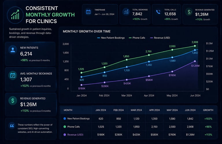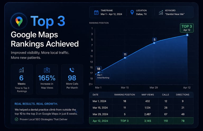 See how we help practices increase patient bookings, improve local rankings, and scale with AI-driven strategies.